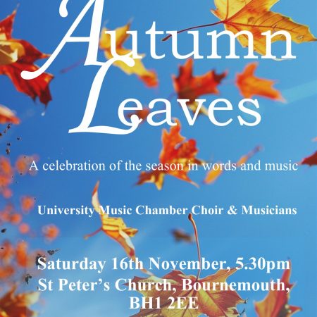 Universities Music – Autumn Leaves Concert Saturday 16th November 2024 5:30 pm St Peter's Church Hinton Road BH1 2EE Get Directions
